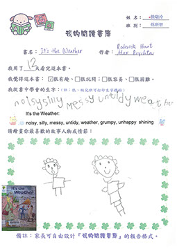 此外,感謝家長積極參與閱讀計劃,並用心地設計別具一格的《我的閱讀書庫-閱讀報告》,為孩子建立愛書人的好榜樣。