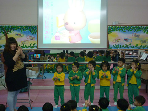 2014年4月1日 ,我們邀請了香港食物環境衛生署的衛生教育展覽及資料中心工作人員到校為低班小朋友進行「衛生講座」,透過有趣的卡通片《 清潔小白兔 》 ,講解有關衛生的常識及學習保持衛生的方法,如:進食前後、玩玩具和觸摸小動物後要洗手;放進雪櫃的食物須分開生和熟擺放 ; 花盆底要避免積水 , 防止蚊蟲滋生等。講座內容生動切合幼兒的學習需要,讓幼兒從遊戲中認識個人、食物和環境衛生的知識。此外 ,每位小朋友更獲贈一份 「清潔小白兔 」貼紙遊戲。